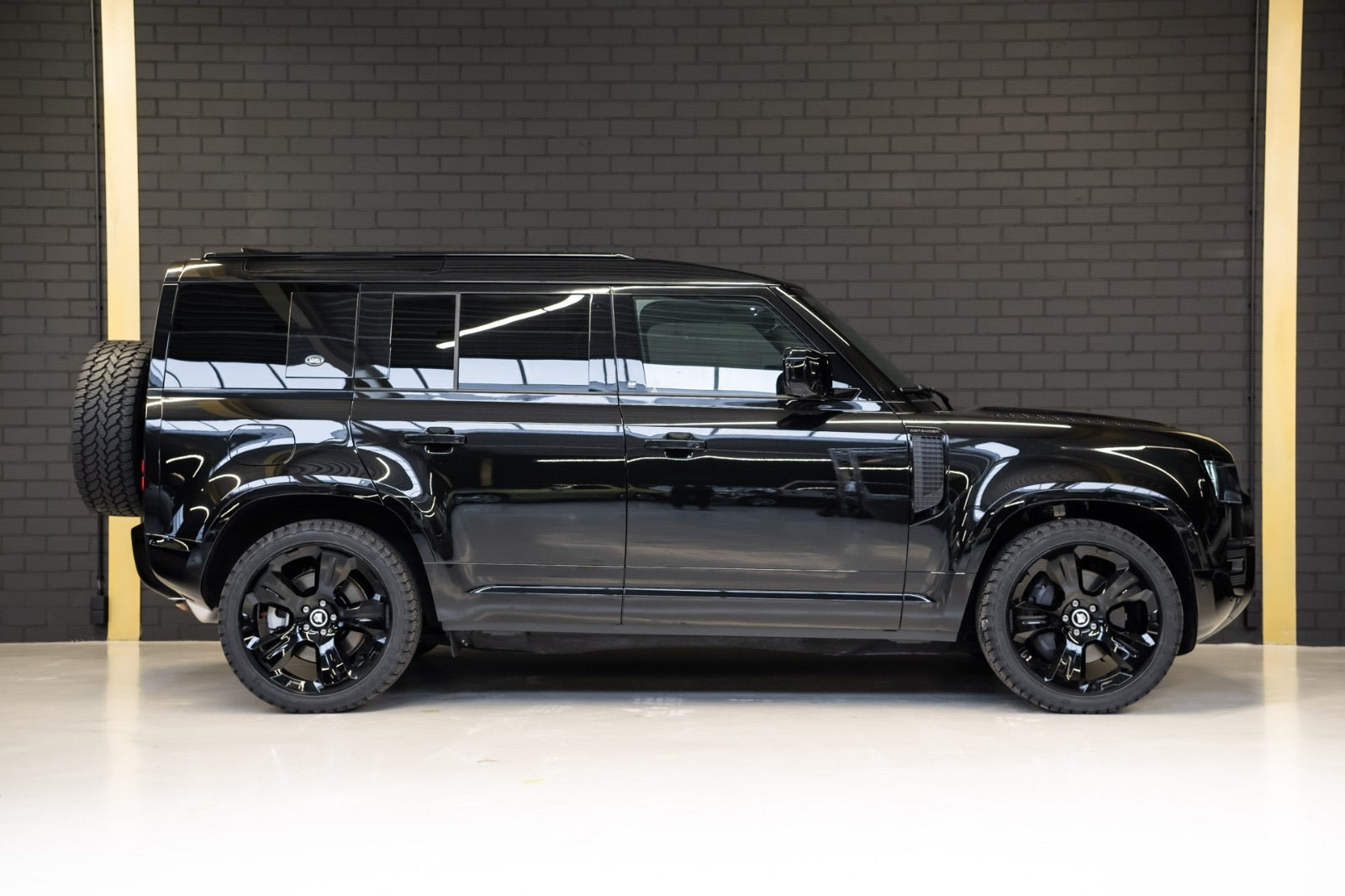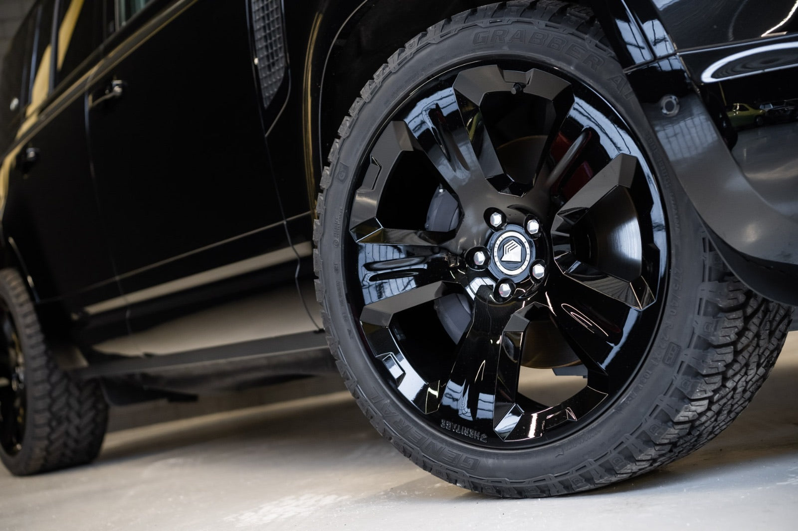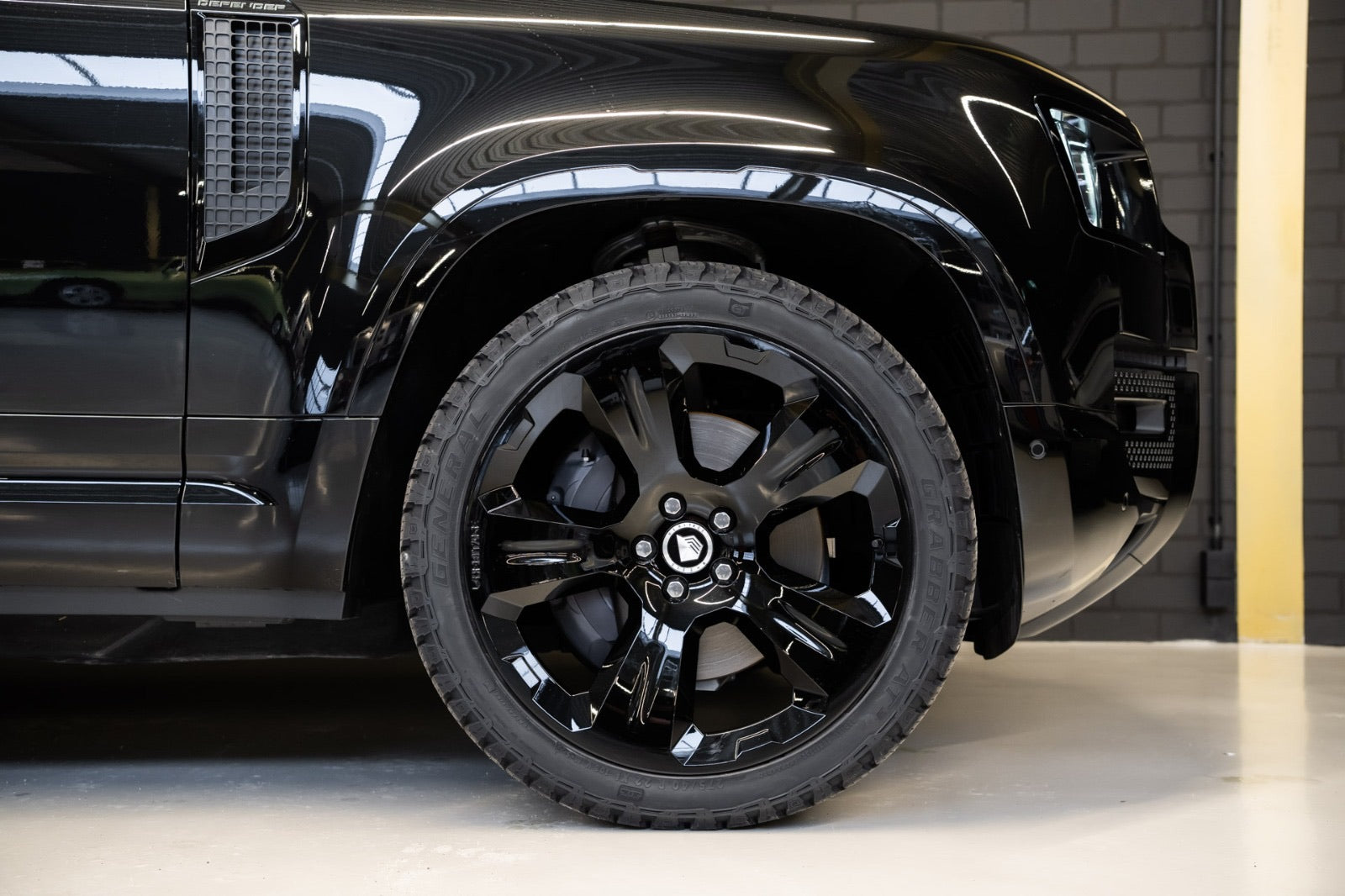 The Defender in itself is a great car and these photos tell you why. Of course we enhanced the Defender by making it even more luxurious and a better stance with our Space Cowboy wheels in gloss black. The car is in stock and available.