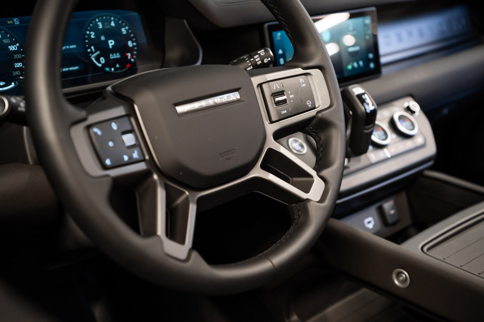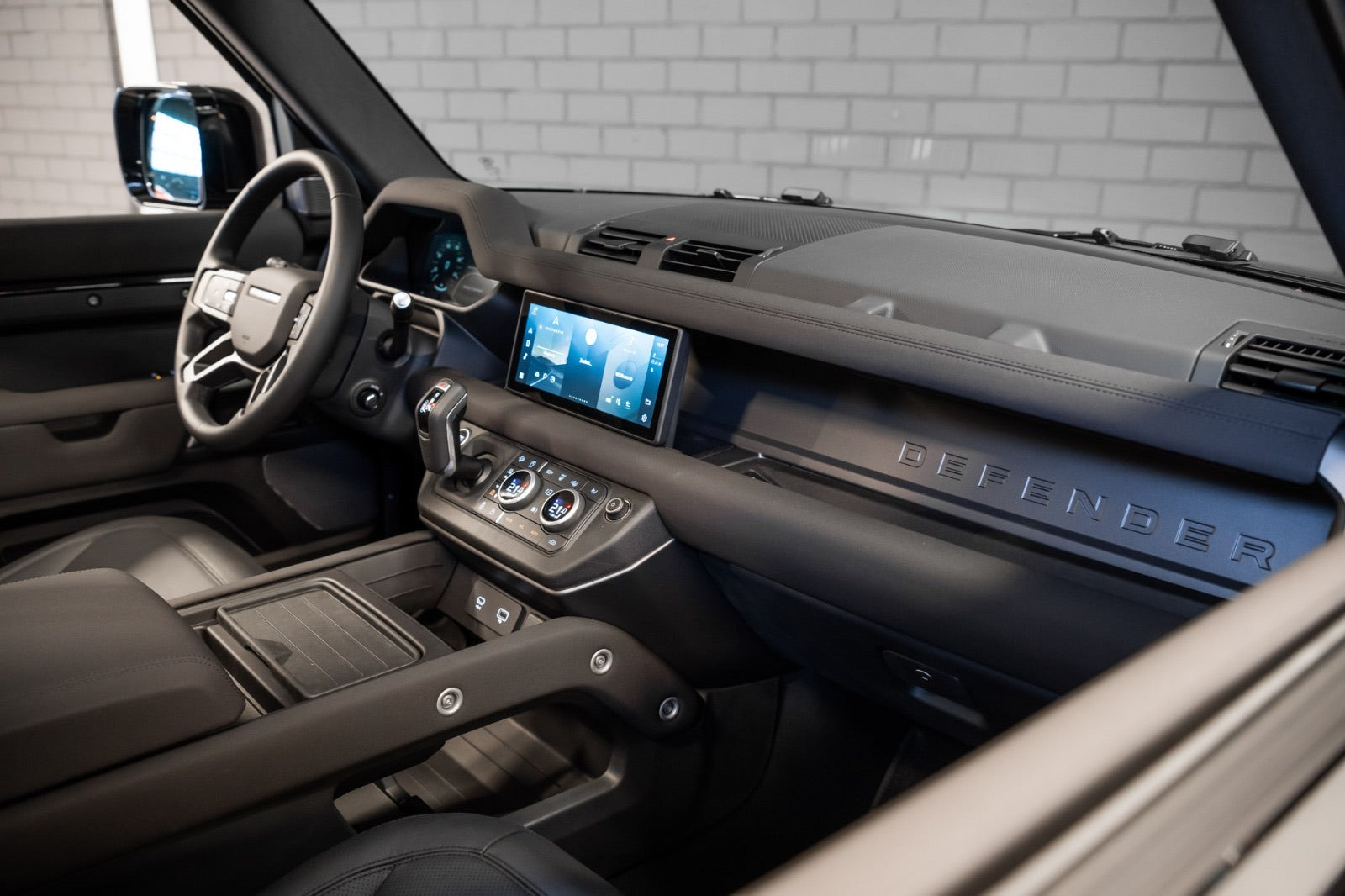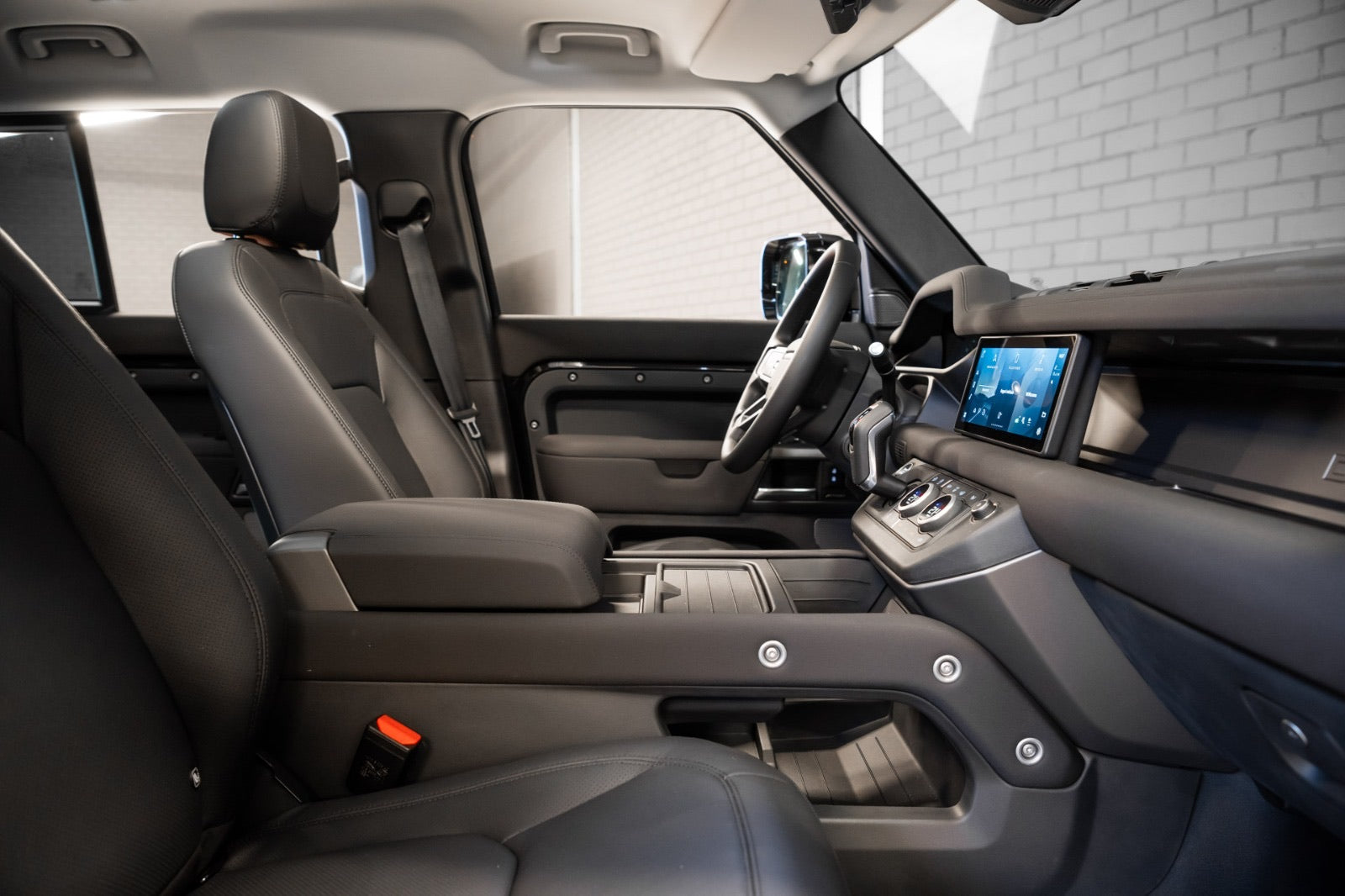 The Defender in itself is a great car and these photos tell you why. Of course we enhanced the Defender by making it even more luxurious and a better stance with our Space Cowboy wheels in gloss black. The car is in stock and available.